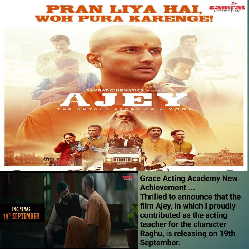 Grace Acting Academy New Achievement... Thrilled to announce that the film Ajey, in which I proudly contributed as the acting teacher for the character Raghu, is releasing on 19th September